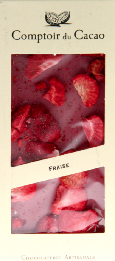 Zahăr, unt de cacao, lapte praf degresat, lapte praf integral, pasta de cacao, capșuni liofilizate, emulgator (lecitină din soia), aciditate: acid citric, aromă naturală de vanilie. Poate conține urme de gluten, nuci.