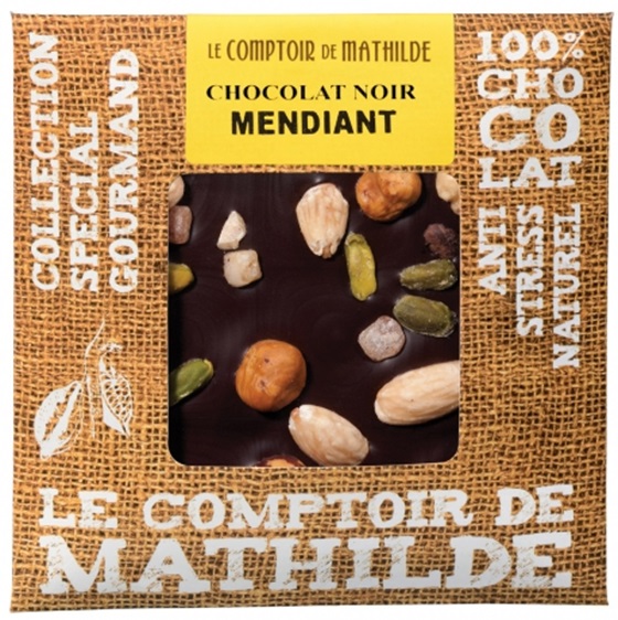81,25% ciocolată neagră (64% masă de cacao, zahăr, 9% unt de cacao, lecitină de soia, vanilie naturală), 18,75% fructe uscate (alune, migdale, fistic), portocale confiate (portocale, zahăr, sirop de glucoză, dextroză).