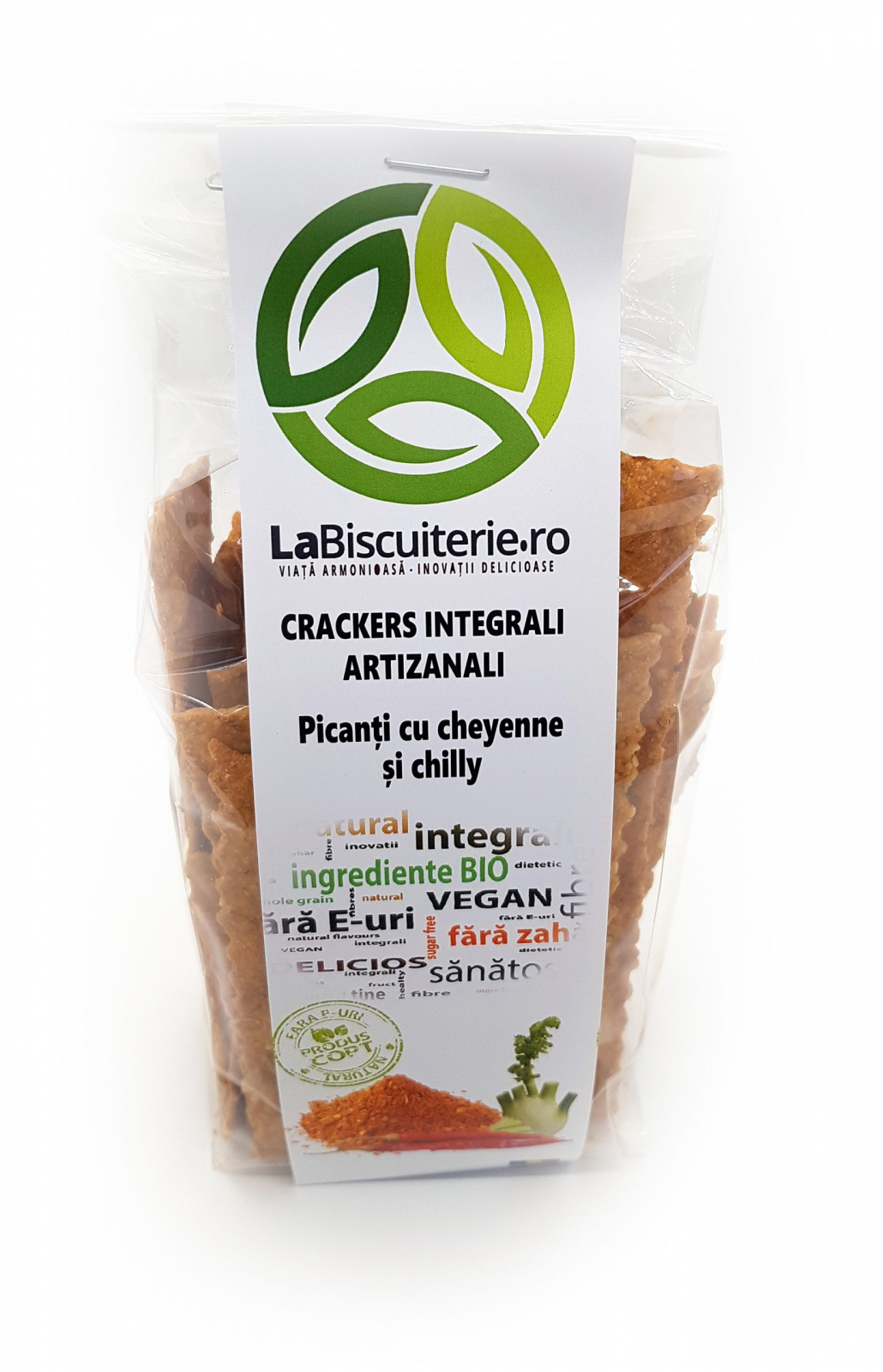 Crackers integrali artizanali, picanti cu cheyenne si chilly, 125g