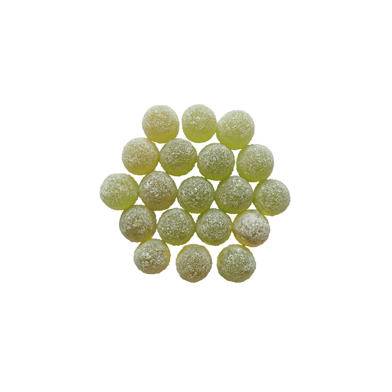 zahar, amidon din cartofi, sirop de glucoza, apa, colorant alimentar: concentrat de spirulina si sofran.