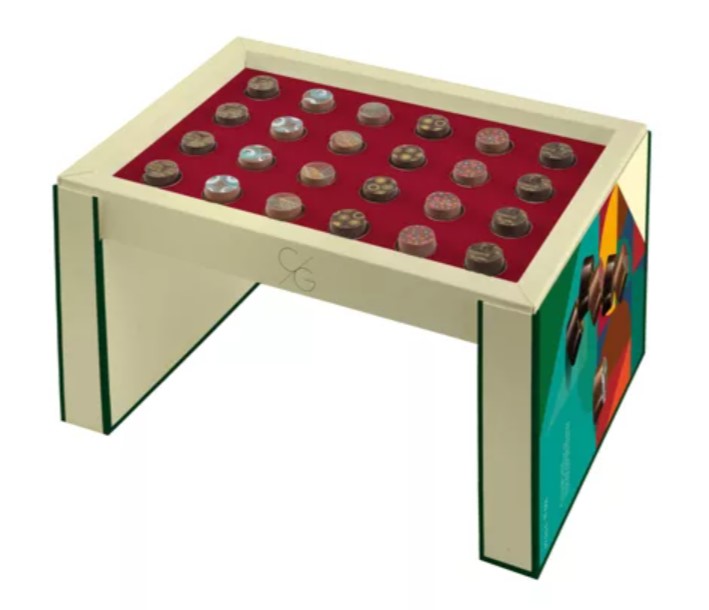 Praline Gourmet Chocolate într-un nou pachet Ciocotable captivant. Cutia poate fi transformată într-o masă practică și cu adevărat confortabilă, gata pentru degustare!