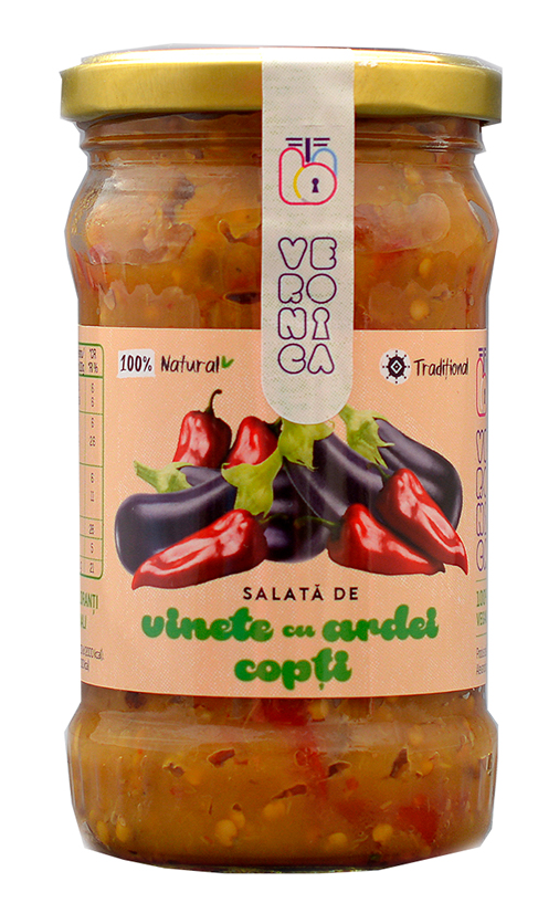 Încearcă această salată de vinete cu ardei copți langă o friptură sau, de ce nu, direct pe o felie de pâine. Gustul de legume coapte, ușor acrișor, te va cuceri pe loc! Produs artizanal din ingrediente proaspete.
