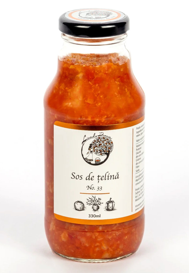 Continut: telina, ardei gogosar, ceapa, suc de rosii, mustar, otet, miere, piper, sare, cimbru, foi de dafin