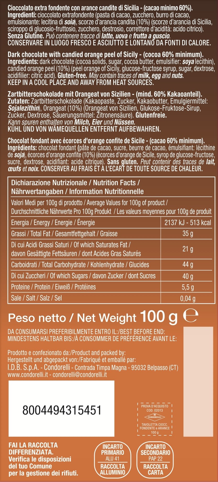 Încă de la început, inițiativa antreprenorială a lui Francesco Condorelli a avut o legătură strânsă cu teritoriul, iar roadele acestuia au reprezentat inspirația pentru crearea tuturor specialităților gastronomice pe bază de cacao și alte ingrediente de calitate superioară.