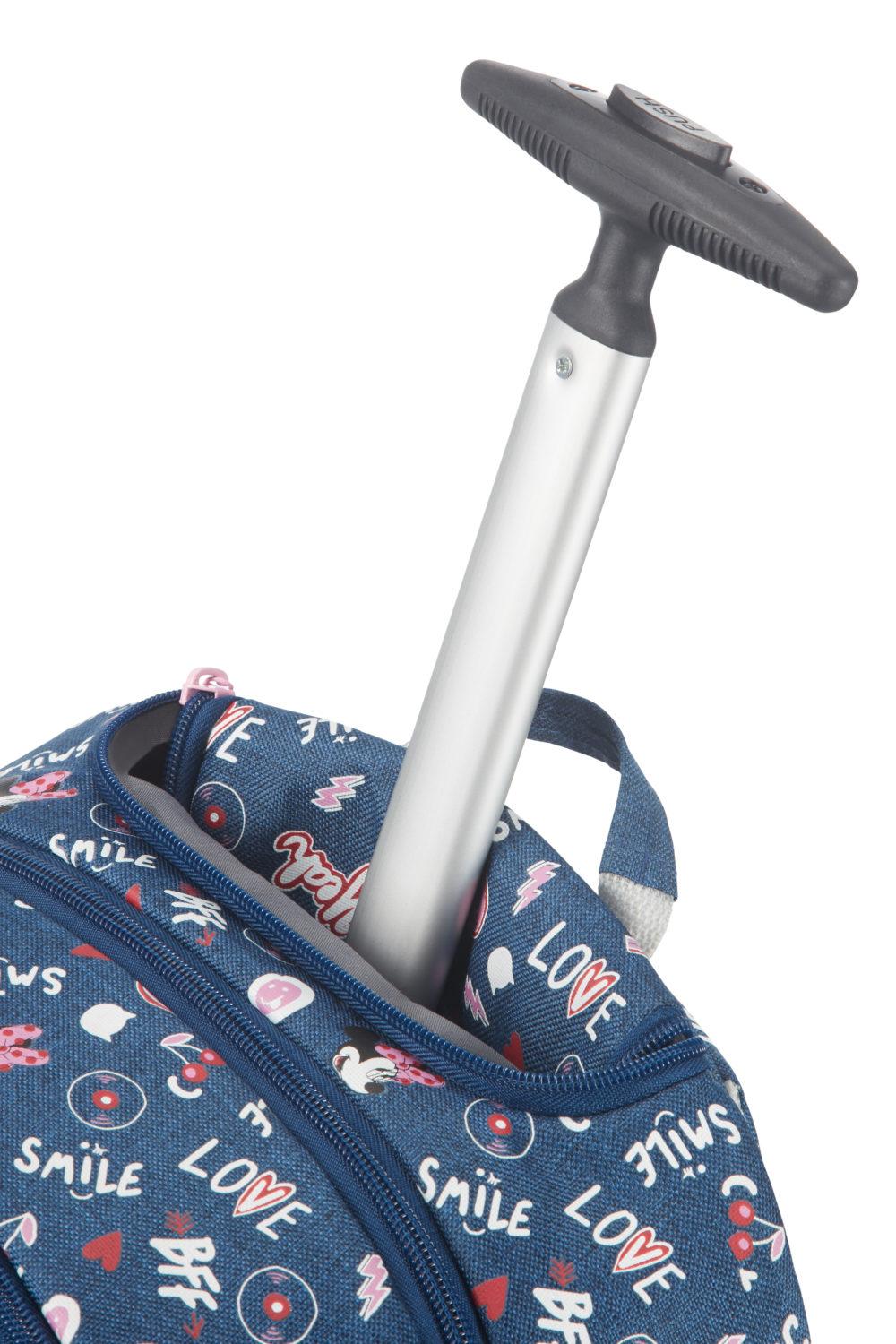 Acest ghiozdan prevăzut cu roți, oferă confort și siguranță, bretele cu lungime reglabilă, material de calitate și un design încântător. Ghiozdanul este frumos compartimentat și extrem de încăpător.