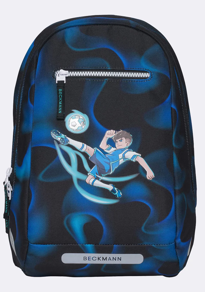 Acest rucsac elegant este perfect pentru copiii pasionați de sport. Are un design cool, cu un jucător de fotbal și o schemă de culori albastru și negru. Rucsacul este fabricat din poliester reciclat și are un compartiment principal spațios pentru toate lucrurile esențiale.