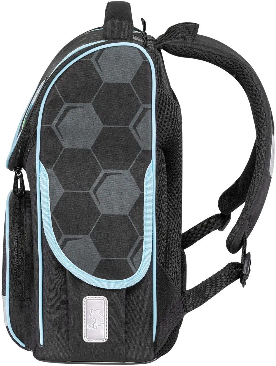 • Ghiozdanul are materiale reflectorizante de calitate superioara (nu contine PVC) care sporesc vizibilitatea copiilor in trafic, in zilele ploioase, intunecate sau seara.