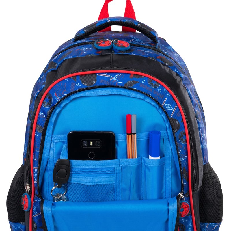 Ghiozdan triplu compartimentat cu următoarele carcateristici: