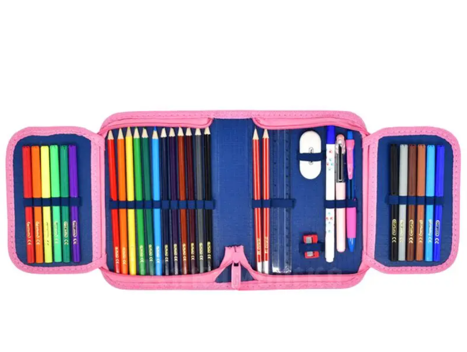 Acest penar cu 2 clape interioare este un accesoriu practic si functional, perfect pentru a pastra toate instrumentele de scris si colorat organizate si usor de accesat.