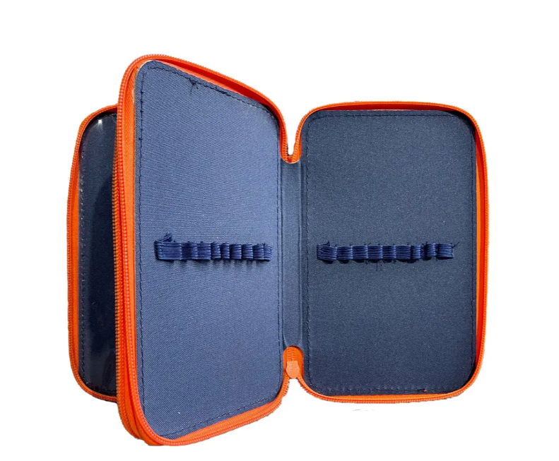 Pentru protectia continutului, exteriorul penarului este buretat si cartonat.