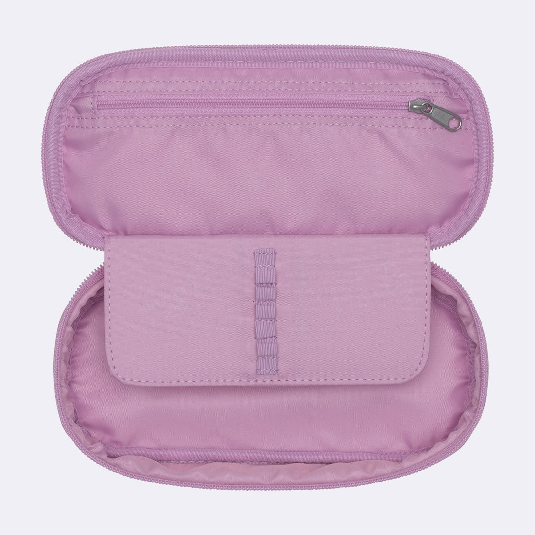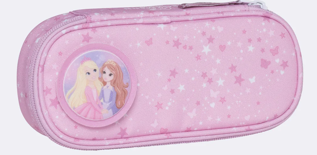 Trusa ovală este spațioasă, are o secțiune separată pentru creioanele cele mai des folosite și un buzunar interior cu fermoar. Designul cutiei de creion se potrivește cu designul rucsacului de clasa întâi și are un buton înlocuibil.