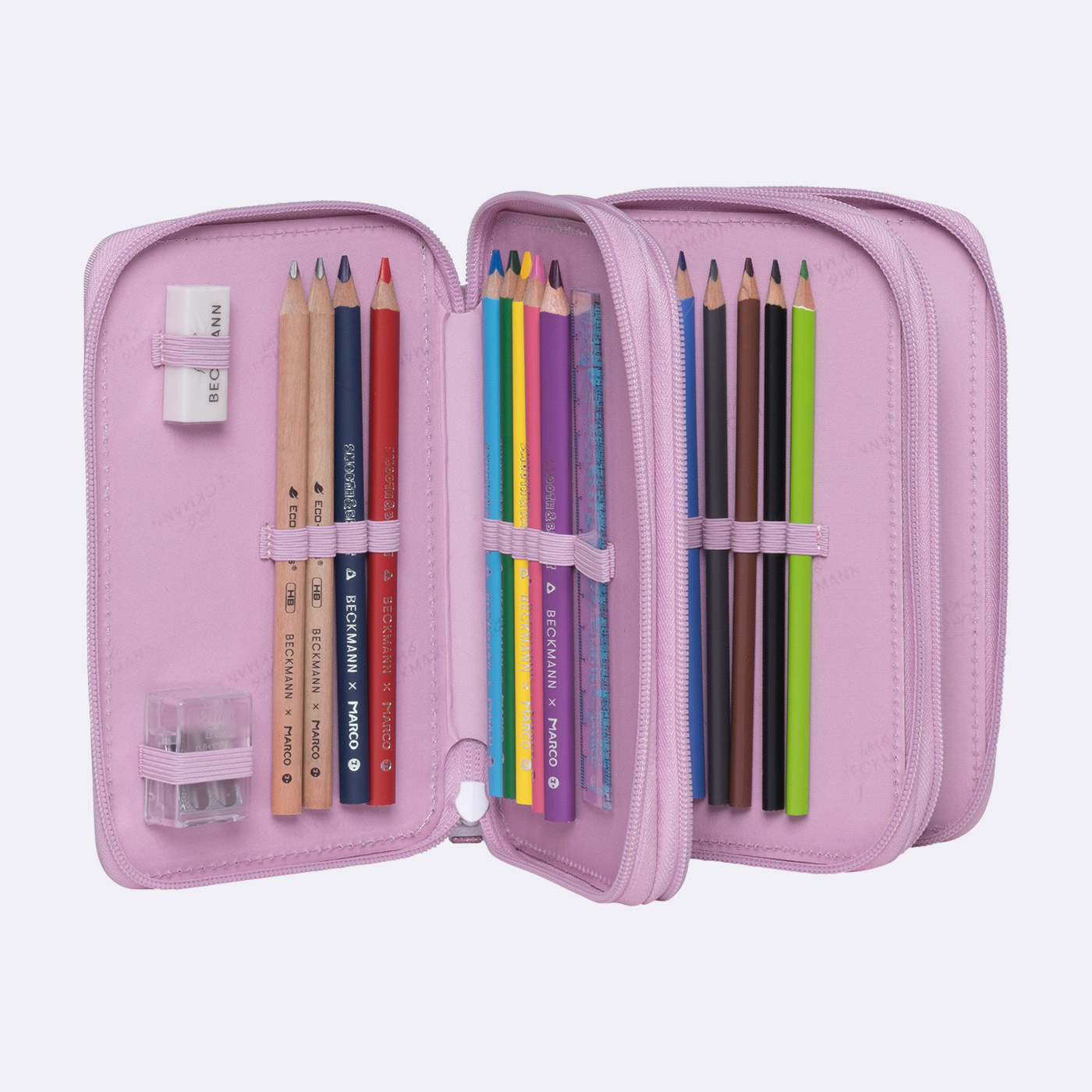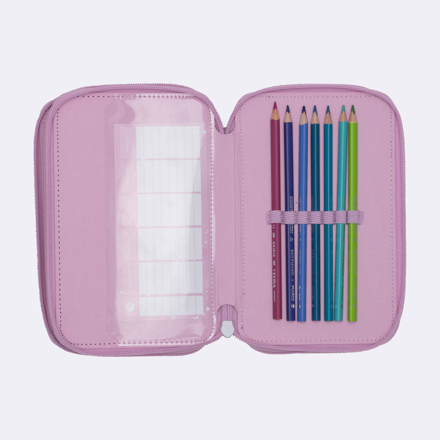 Penarul este plin de surprize și conține tot ce ai nevoie pentru școală și teme. Include creioane și creioane colorate fabricate din lemn certificat FSC.