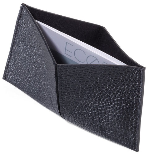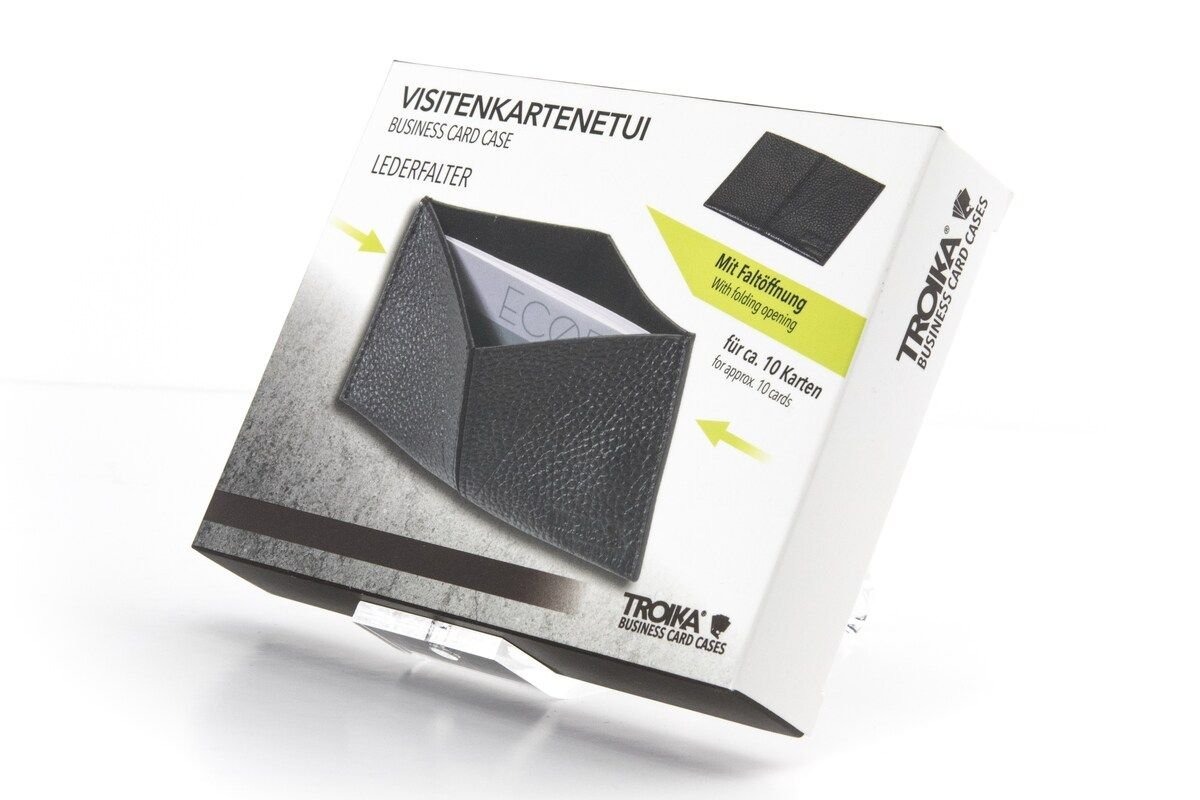 Într-o culoare black business, fabricat din piele naturală, portofelul pentru cărți de vizită de la Troika încape ușor în buzunar.