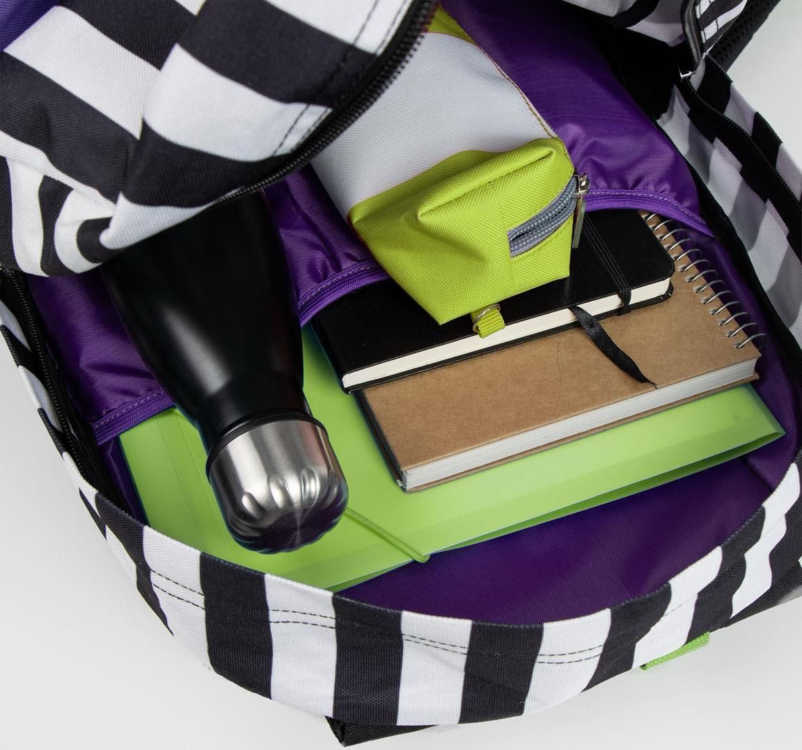 Rucsacul Beetlejuice este un accesoriu indispensabil pentru fanii filmului cult al lui Tim Burton.