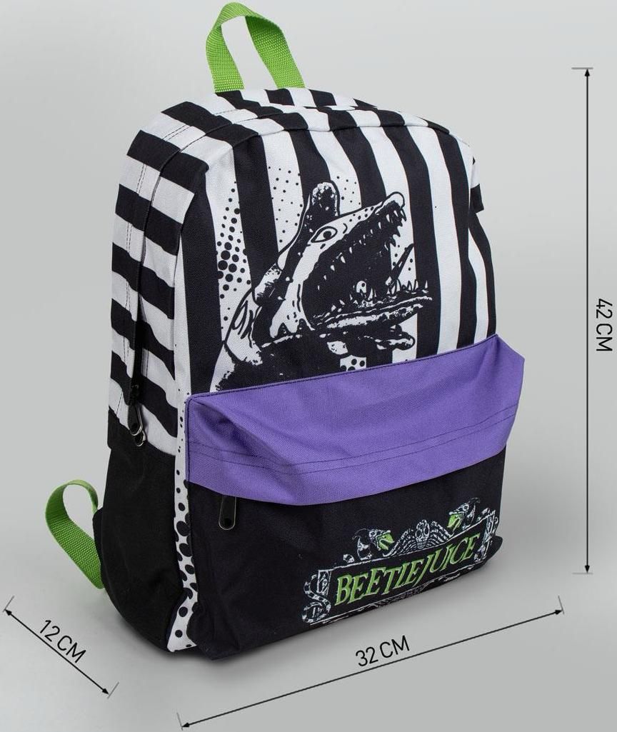 Având un design inspirat de lumea fantastică și neobișnuită a filmului Beetlejuice, acest rucsac este un adevărat tribut adus filmului.