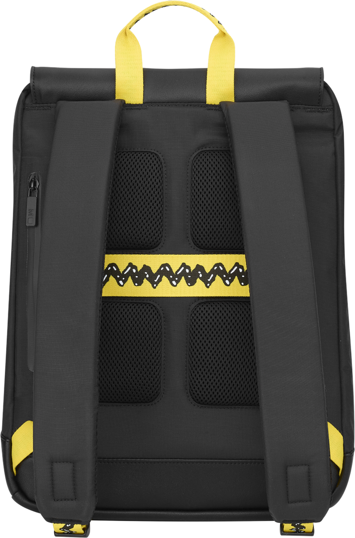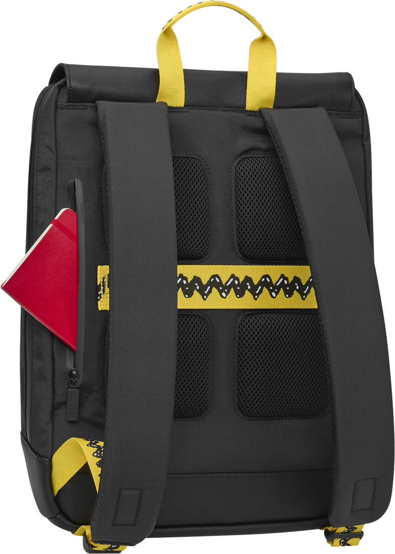 Under the magnetic flap on the front, a classic Peanuts comic strip brings to life the humor and wisdom of Charles M. Schulz’s beloved characters. Additional Peanuts-themed details, like the graphics on the webbing straps and front panel, make this backpack a must-have for collectors.