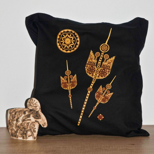Furca de tors cu coarne de berbec este motivul pe care l-am pus pentru voi pe aceasta traista.