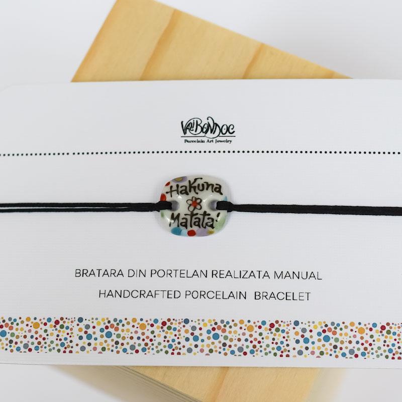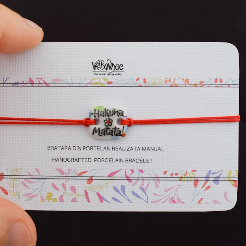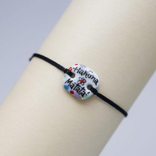 Această brățară din porțelan, formată și pictată manual, este foarte rezistentă la apă și vă veți putea bucura de ea mult timp