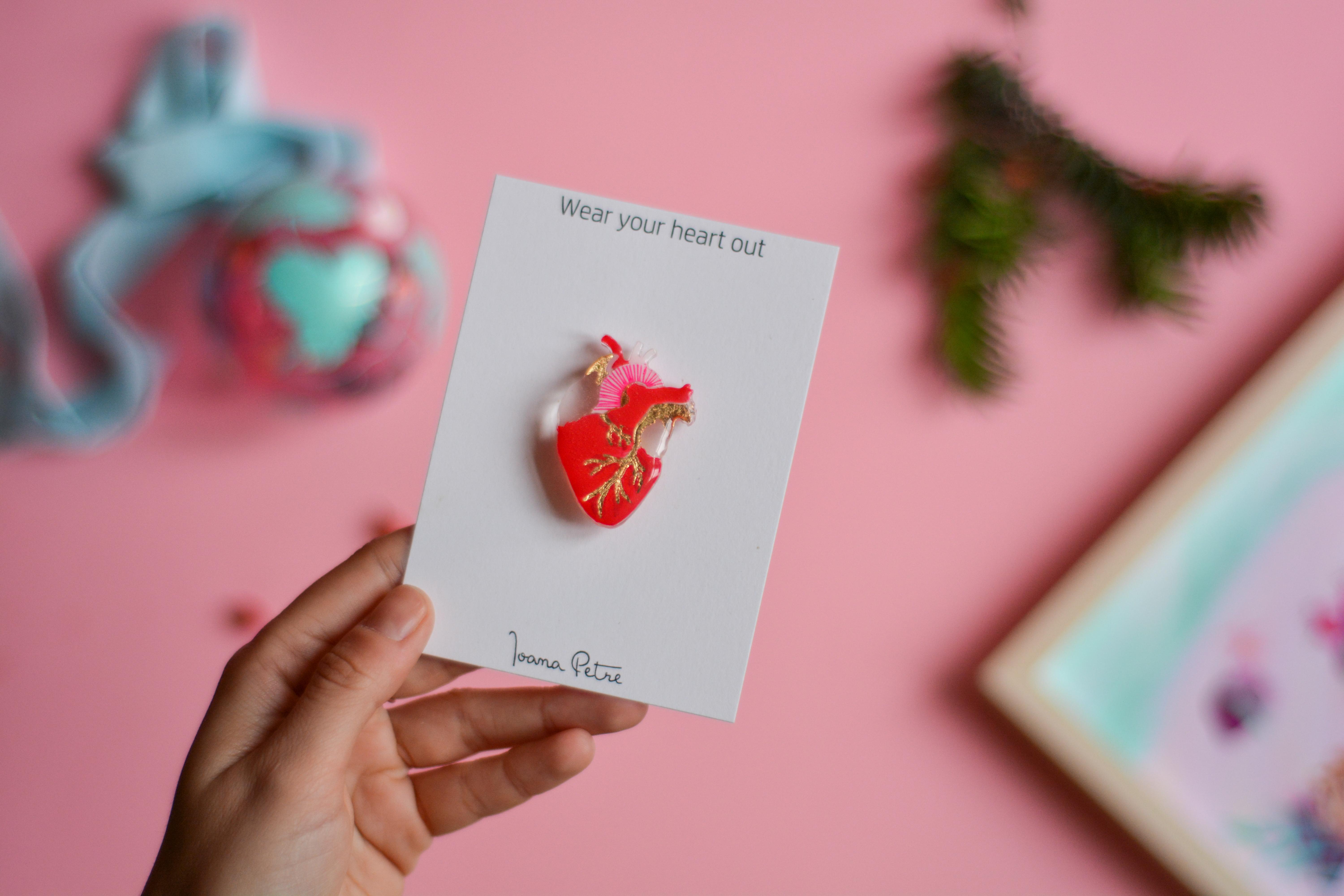 "Wear your heart out" este o colectie de brose care vine sa incurajeze pe fiecare dintre noi sa-si poarte vulnerabilitatile la vedere, sa-si imbratiseze toate emotiile, dar si nesigurantele si sa primeasca cu inima deschisa experientele fiecarei zile.