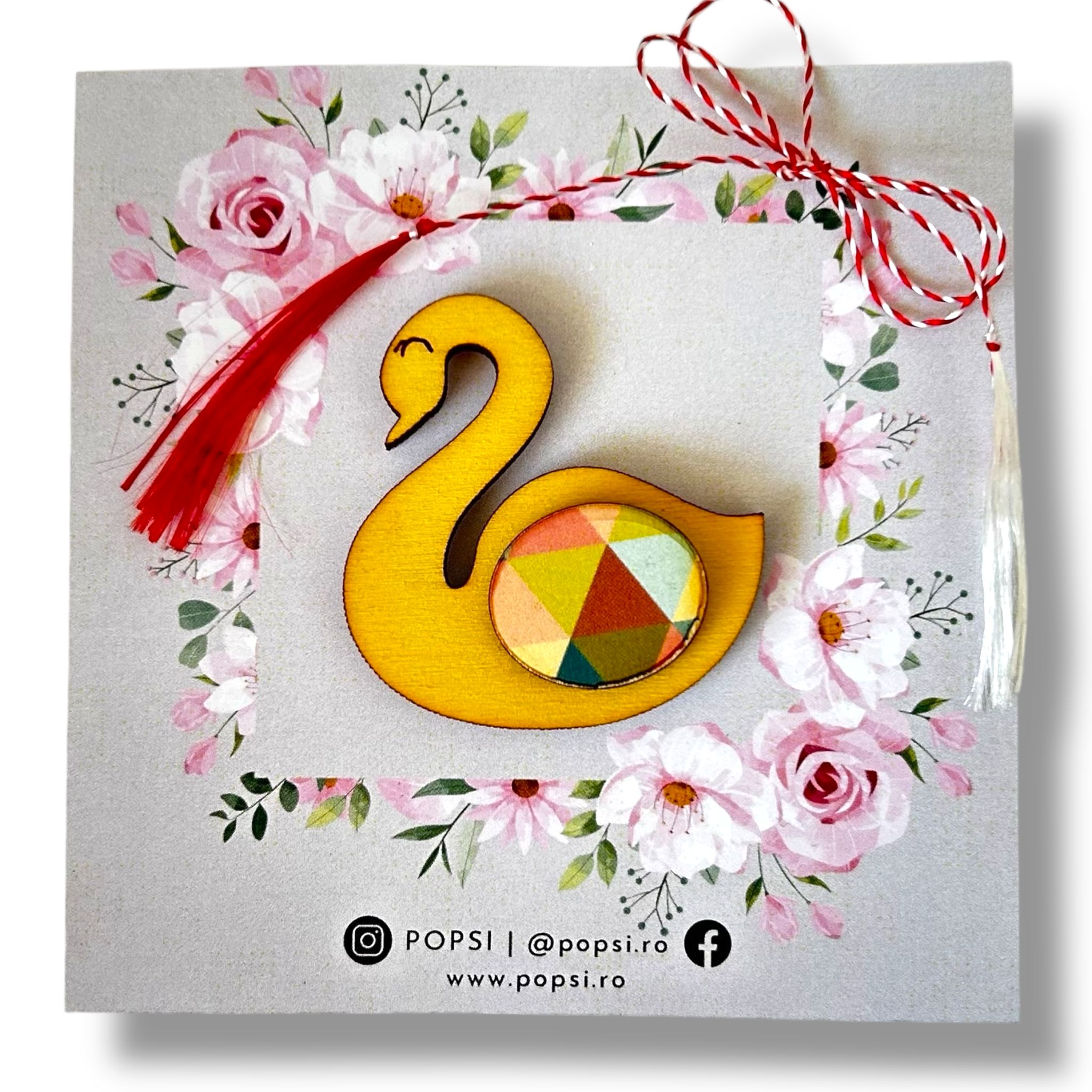 Martisor tip brosa forma lebada vesel colorata, cadoul perfect pentru cei mici si nu numai!