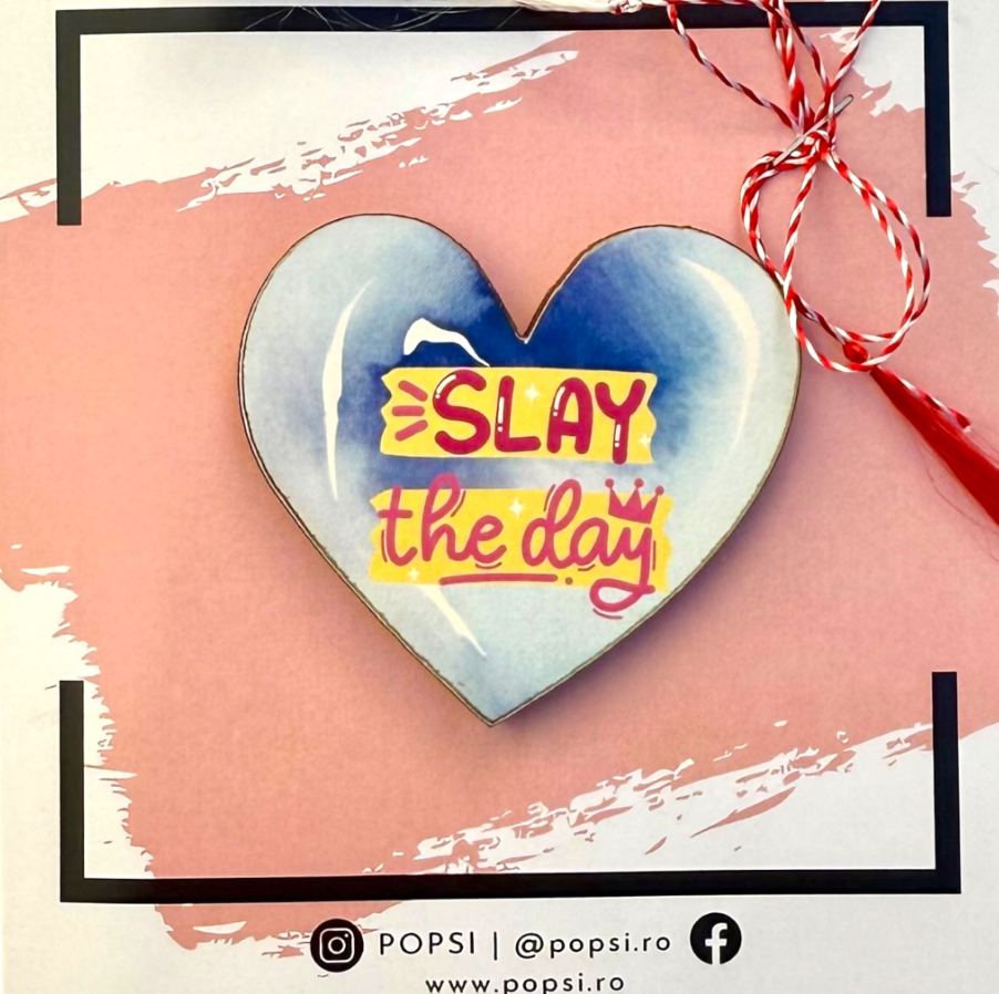 „Brosa martisor din lemn – Inima Slay the day”  în librăriile Cărturești