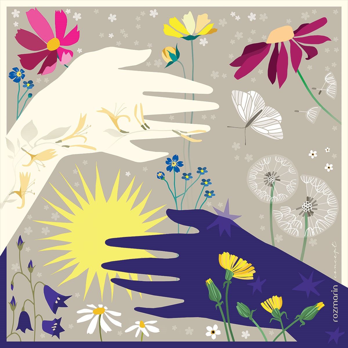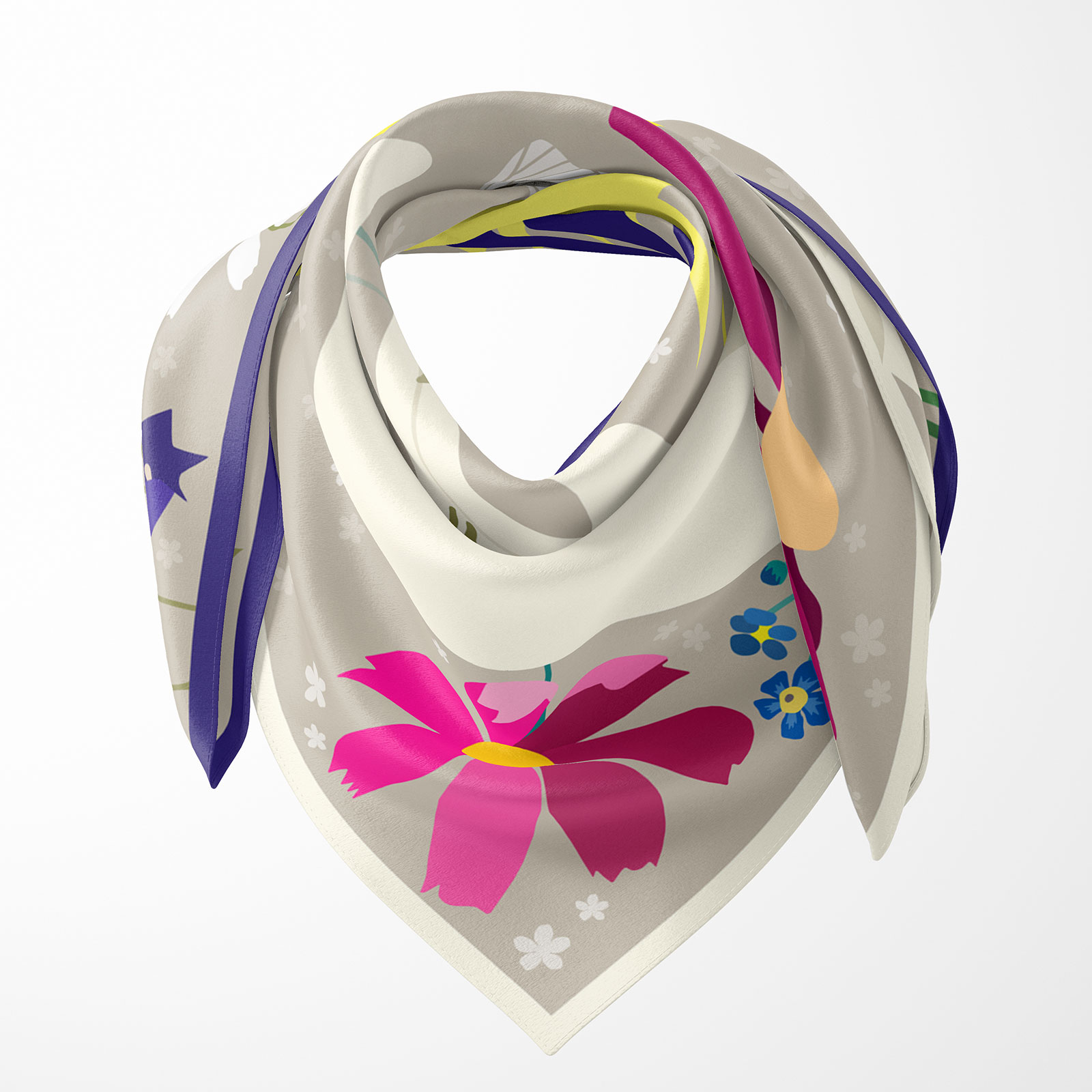 - Eșarfă din mătase naturală twill 100%, printată digital față verso, după un design original de Anca Cernea.