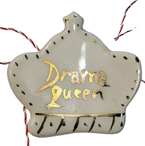 Brosa ceramica realizata manual, decorata cu aur. Prindere inox