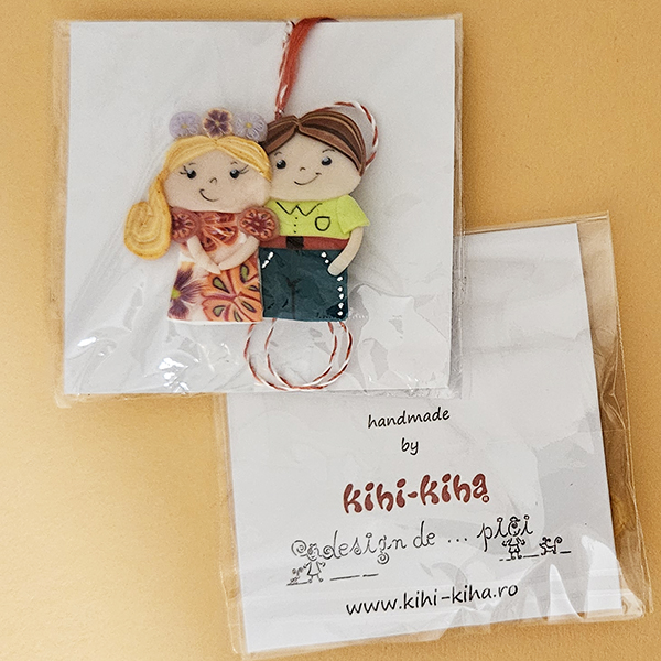 Mărțișor - broșă, realizat manual din pastă polimerică (fimo) folosind tehnica "millefiori", legat cu șnur și ambalat în plic transparent. Mărțișoarelele fiind realizate manual în serie mică, pot să apară mici variații de nuanță, formă și dimensiune față de imaginea de referință.