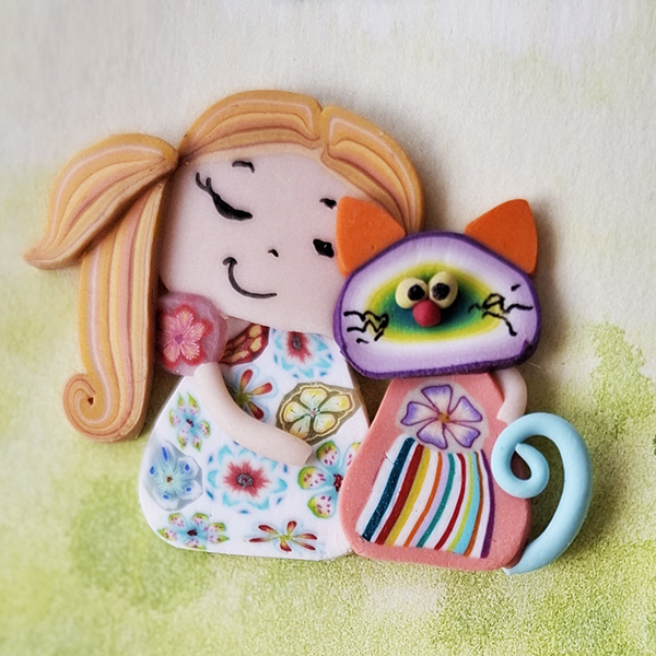 Mărțișor - broșă, realizat manual din pastă polimerică (fimo) folosind tehnica "millefiori", legat cu șnur și ambalat în plic transparent. Mărțișoarelele fiind realizate manual în serie mică, pot să apară mici variații de nuanță, formă și dimensiune față de imaginea de referință.