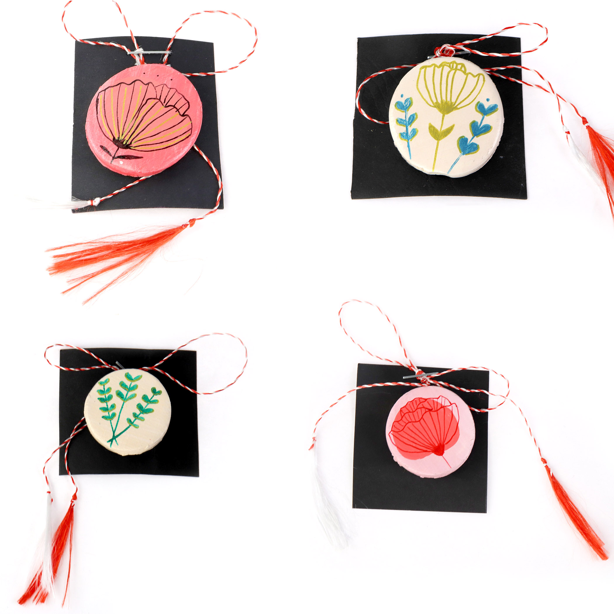 Mărțișoarele sunt lucrate manual, de la modelarea formei până la pictarea modelului. Acestea reprezintă tema primăverii ilustrând o varietate de modele florale. Fiind concepute sub formă de broșă, pot fi un accesoriu purtat indiferent de ocazie.