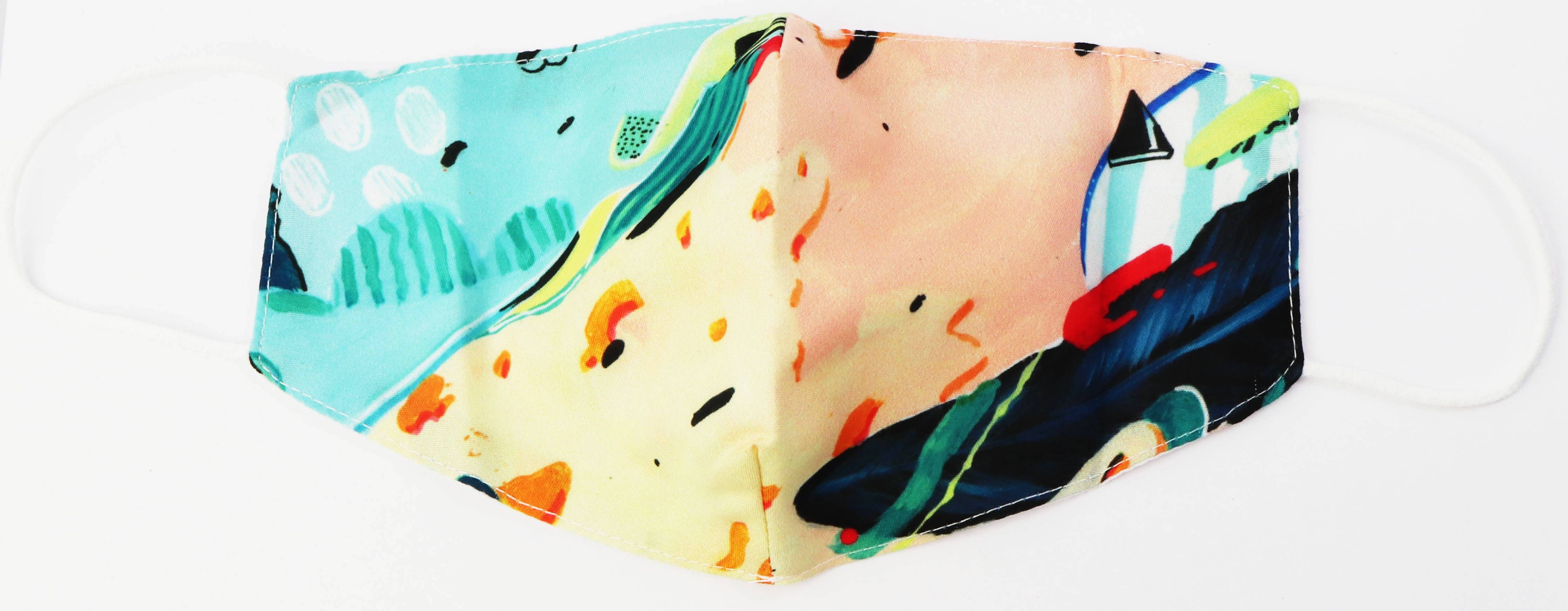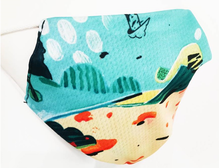 Masca Art tip accesoriu, 2 straturi poliester, cu fibra antibacteriana prevazuta cu sarma pentru nas si elastic moale