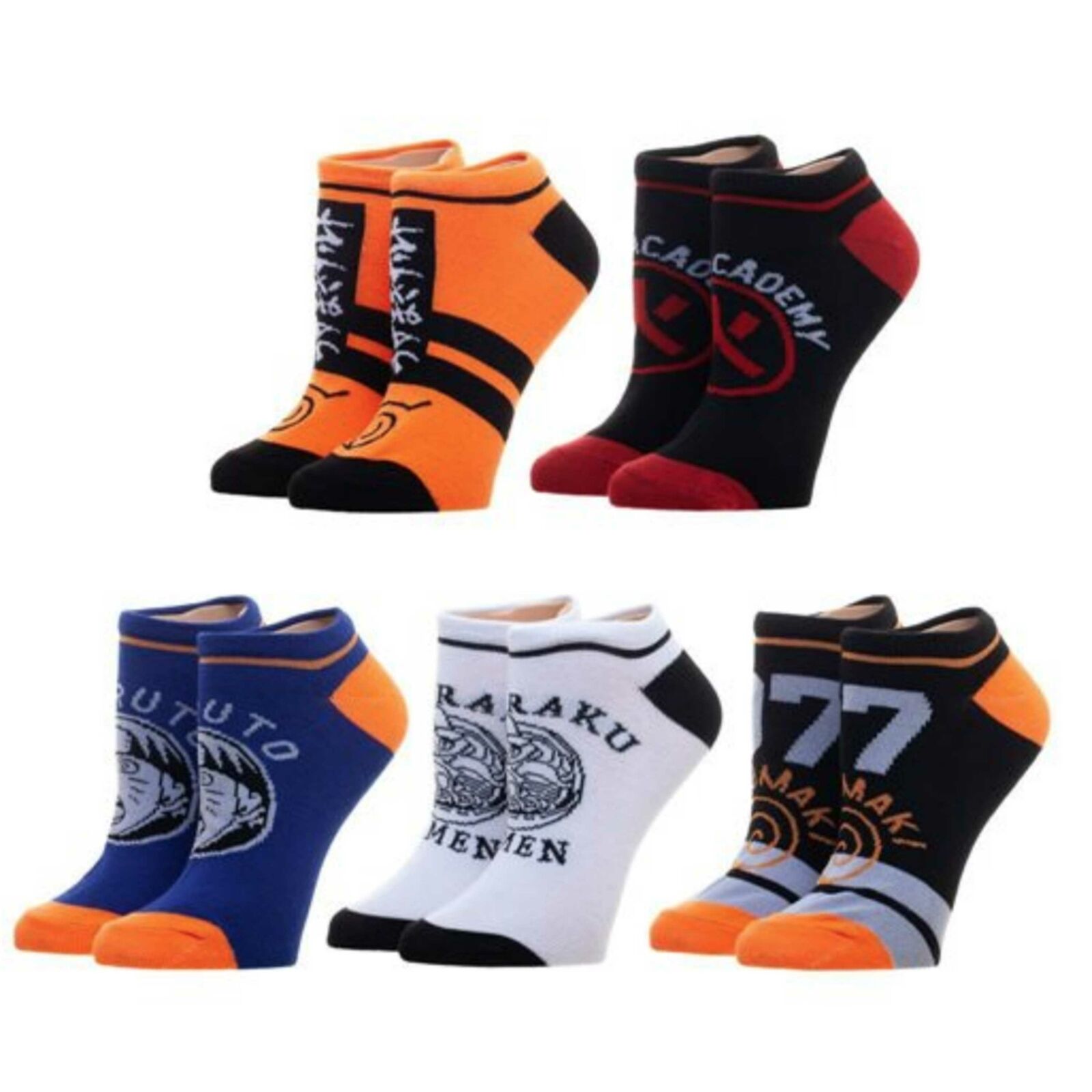 Set 5 perechi de șosete pentru vârsta de 14 + ani cu tematică anime Naruto. Mărime 9-11 conform sistemului de măsurare american.