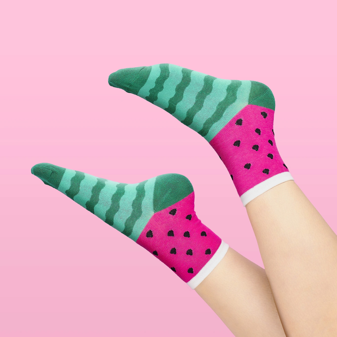 Șosete din colecția Yes Studio cu un design proaspăt și colorat de fructe. Disponibile în două variante de fructe: pepene verde și ananas.