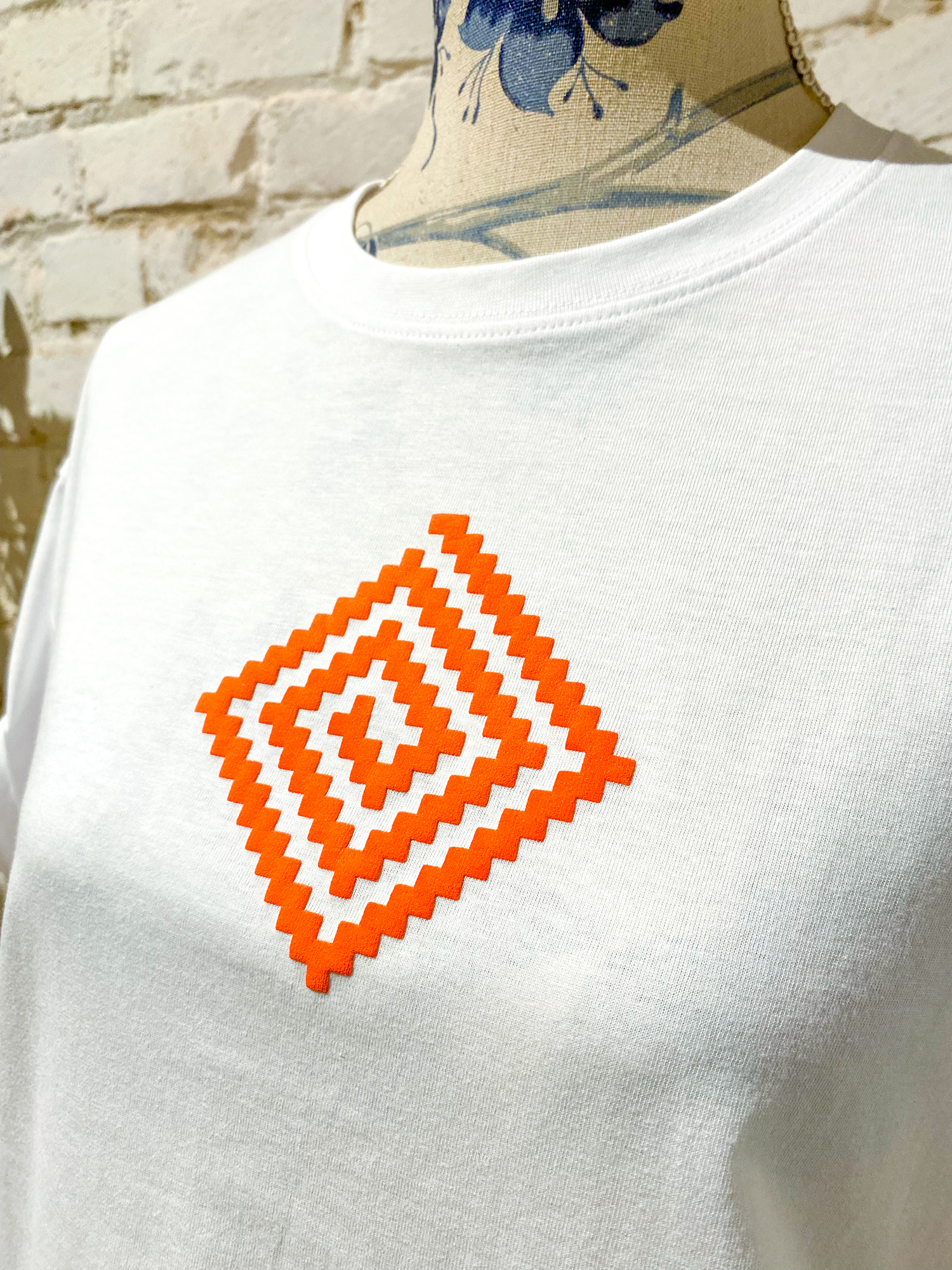 Colecția de tricouri Cărturești x PART TWO (Claudia Draghia & Sebastian Pren) face parte din seria de colaborări Cărturești cu artiști și designeri români. Cei doi designeri explorează motivele tradiționale românești, reinterpretând cusături și elemente de port popular printr-un limbaj grafic contemporan. Pentru cea mai recentă serie din Colecția Cărturești, ne-am propus să redescoperim motive românești, explorând portul popular și cusăturile tradiționale, din perspectiva designului grafic contemporan. Proiectul a pornit din dorința de a readuce în cotidian o parte din patrimoniul cultural imaterial - motivele tradiționale - , broderiile și țesăturile românești fiind una dintre sursele fascinante de inspirație și descoperire a identității și creativității naționale. Primele motive recreate de Claudia și Sebastian s-au inspirat din cusături tradiționale din Bucovina (Băișești, Zaharești) și elemente specifice portului popular din Moldova (Roman, Neamț). Seria va continua. Sebastian Pren, ilustrator și designer grafic are un stil recognoscibil bazat pe forme geometrice, contraste puternice și compoziții riguroase. Proiectele sale, între grafică, design și artă murală, sunt versatile, dar păstrează o identitate coerentă, consolidată prin inițiativele personale care i-au definit limbajul vizual. Claudia Draghia, designer grafic, se concentrează pe evenimente culturale, postere și proiecte editoriale. Colaborarea lor, începută în 2021, a produs identități vizuale și proiecte pentru diverse instituții culturale.) Material: 100% bumbac, 190 gr/mp