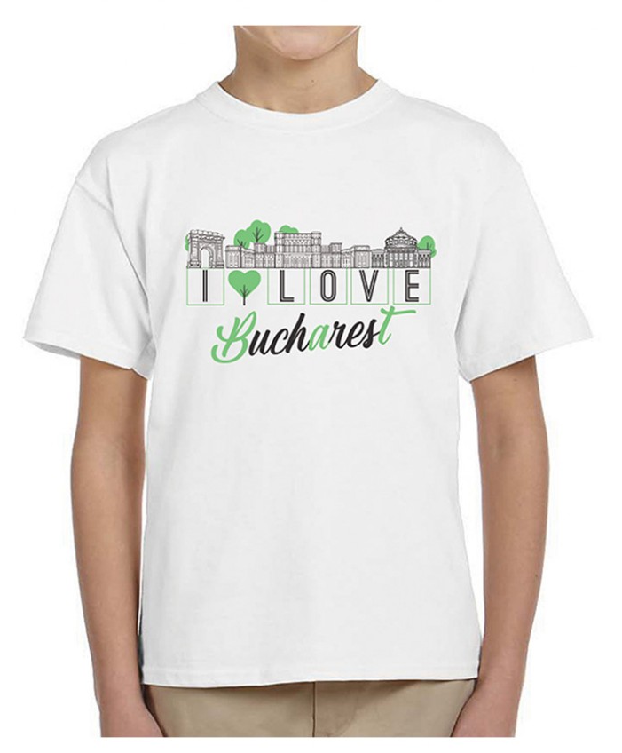 Desenul ilustrează cele mai cunoscute edificii ale capitalei României – Palatul Parlamentului, Arcul de Triumf și Ateneul Român.