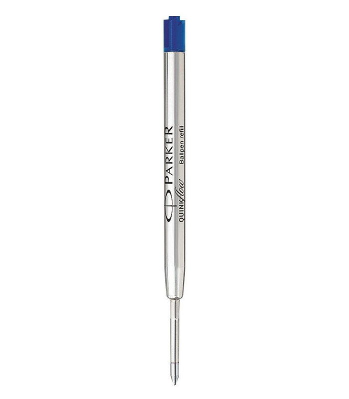 Mină cu cerneală albastră și grosime F (Fine) pentru pix cu bilă.