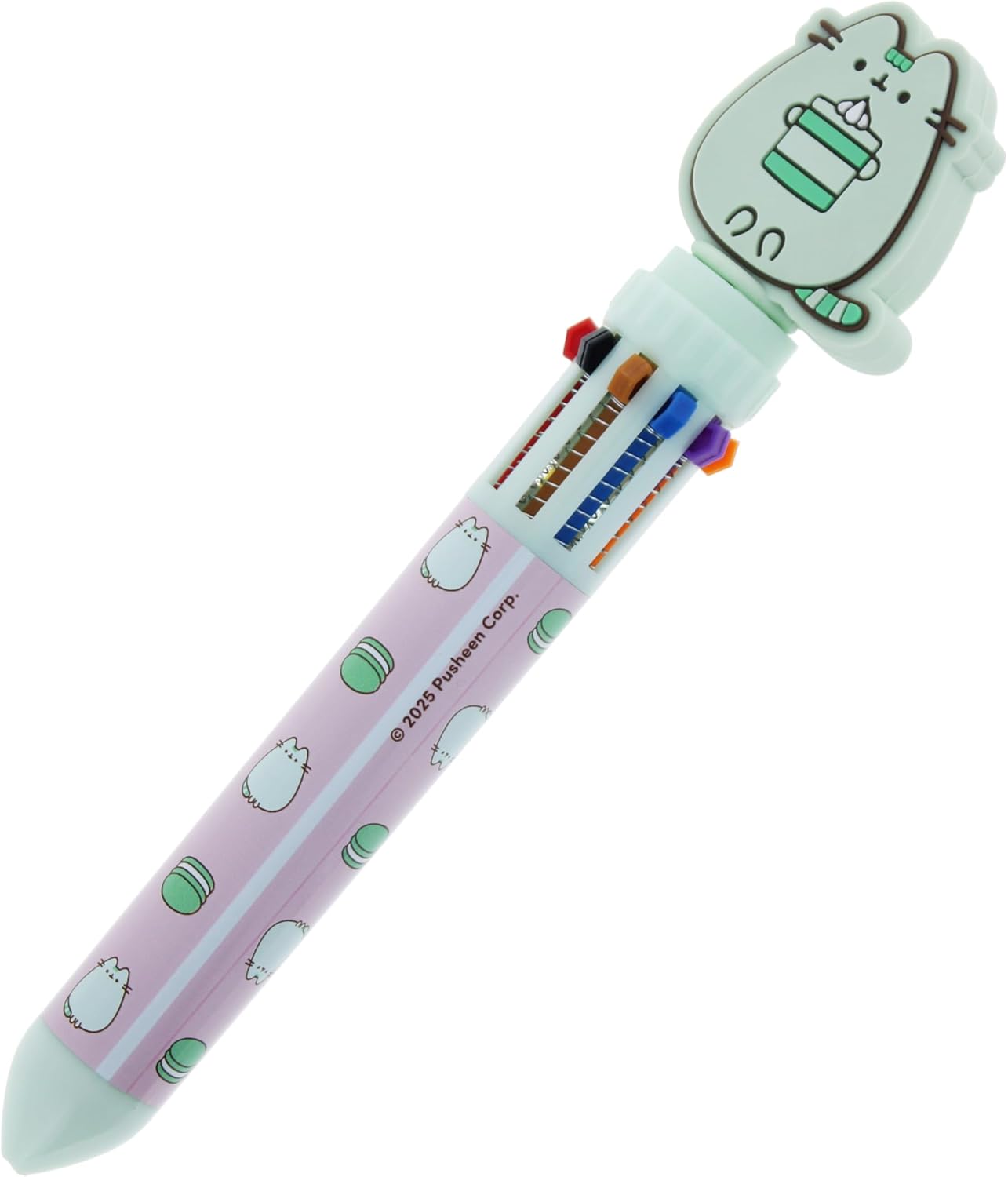 Disponibile în 2 modele asortate, aceste pixuri Pusheen cu 10 culori au decorațiuni Pusheen adorabile în culori pastelate, mentă sau roz și sunt decorate cu dulciuri delicioase.
