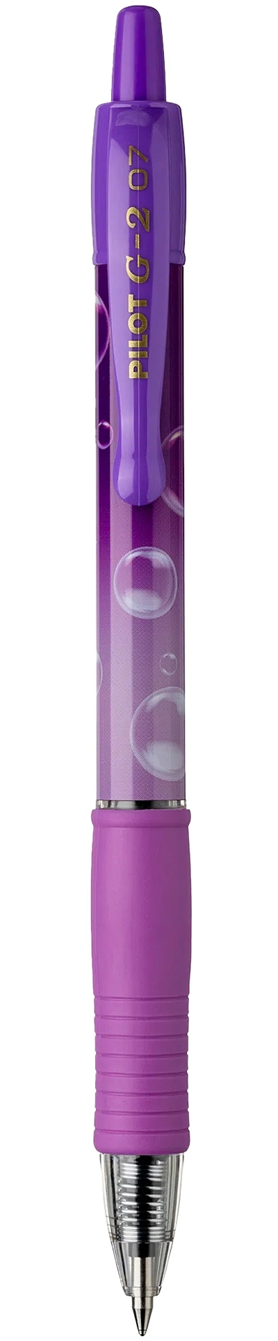 Rollerul cu gel PILOT G-2 Bubble 0.7 mm imbina performanta consacrata a gamei G-2 cu un design vesel si modern, intr-o editie limitata decorata cu motive inspirate de bule!