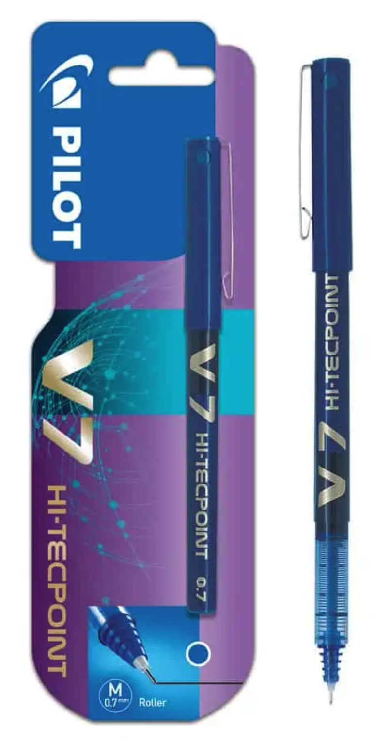 Rollerul cu gel PILOT V7 Hi-Tecpoint este un instrument de scris care face parte din gama Begreen, cu un corp fabricat din materiale reciclabile. Acesta aluneca usor pe coala de hartie in timpul folosirii datorita cernelii de buna calitate si varfului special. Este util pentru scrierea in spatiile de mici dimensiuni.