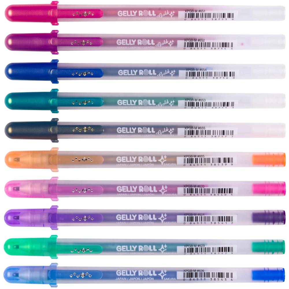 Setul de 10 pixuri Gelly Gold & Silver Shadow de la Sakura este alegerea ideala pentru cei care doresc sa adauge o nota de eleganta si stil scrisului zilnic sau proiectelor creative. Aceste pixuri sunt concepute pentru a oferi linii cu un efect dublu unic: scriere aurie si argintie, fiecare litera fiind inconjurata de margini colorate vibrante. Acest efect de umbra colorata face ca fiecare cuvant sau desen sa capete o dimensiune artistica si un aspect distinctiv, fiind perfecte pentru scrapbooking, decoratiuni, notite speciale sau chiar invitatii personalizate.