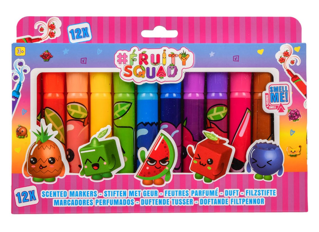 Set de 12 carioci colorate cu parfumuri diferite, fiecare dintre cele 12 arome și culori fiind asociate unui fruct.