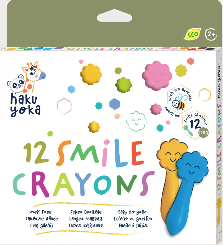 Toate creioanele cerate Haku Yoka au o durabilitate mare, nu lasa urme pe mainile sau hainele copiilor.In plus, sunt creioane fericite cu zambet, menite sa aduca veselie si o stare de bine.