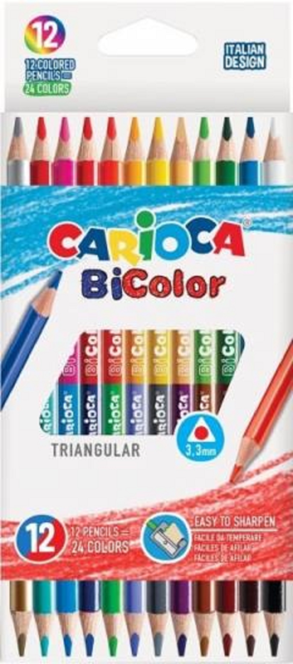 Creioane cu doua culori diferite, la cele doua capete, corp triunghiular, cu mina de diametrul de Ø 3.3 mm, de o calitate excelenta, rezistenta la rupere si usor de ascutit.