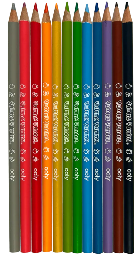 Adaugă un strop de magie fructată în trusa de rechizite cu setul de 12 creioane colorate parfumate Yummy Yummy de la Ooly! Fiecare creion te surprinde cu un parfum delicios – de la portocală, căpșună și ananas, până la alte arome vesele care transformă coloratul într-o experiență multisenzorială.