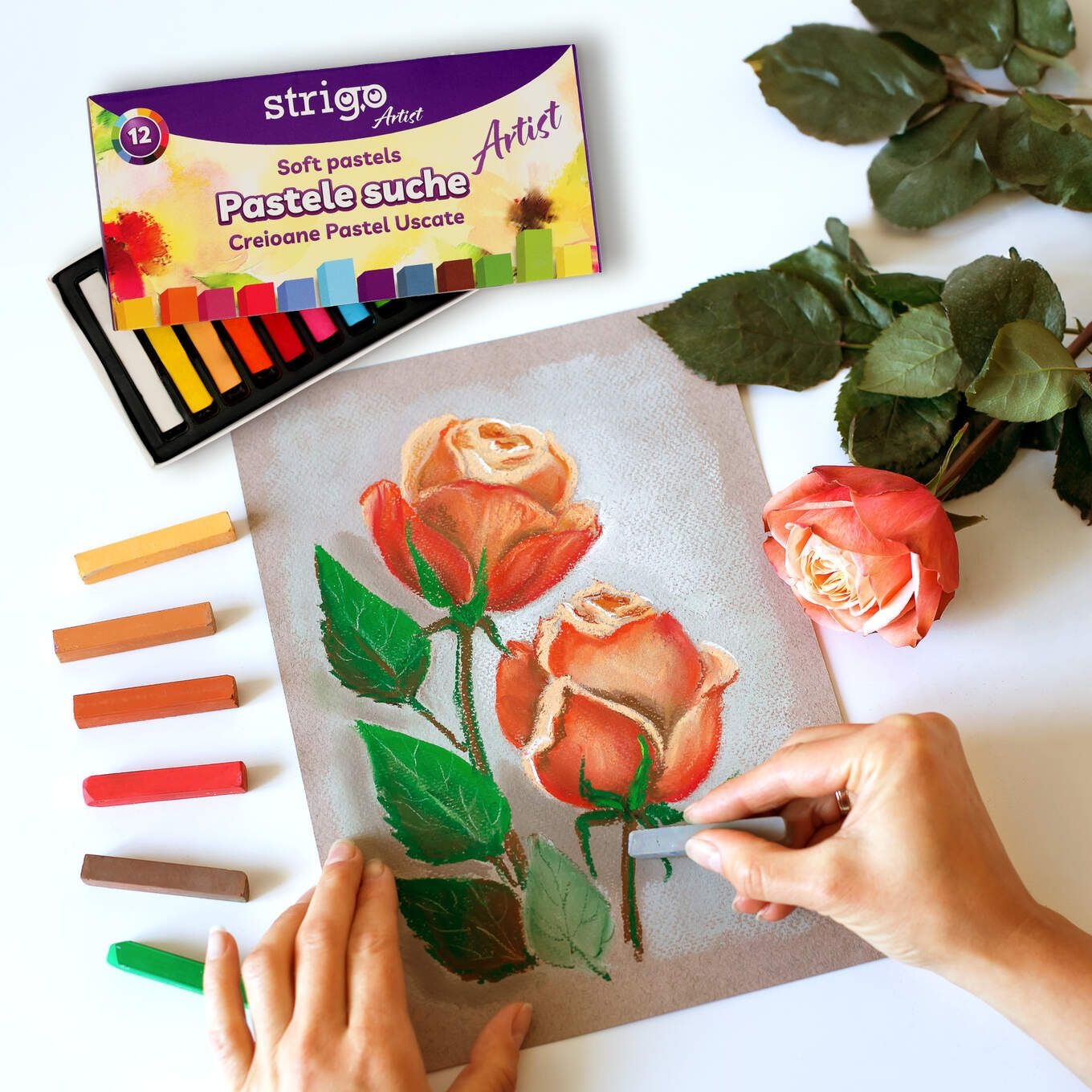 Setul de 12 creioane colorate pastel de la Strigo Artist este ideal pentru a experimenta tehnici de desenat.
