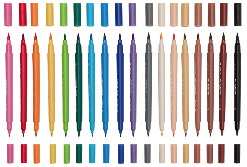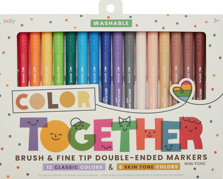 Acest set de carioci cu două capete din colecția Color Together este plin de 12 culori clasice de curcubeu, cum ar fi roșu, albastru, portocaliu și violet, precum și 6 culori de piele.