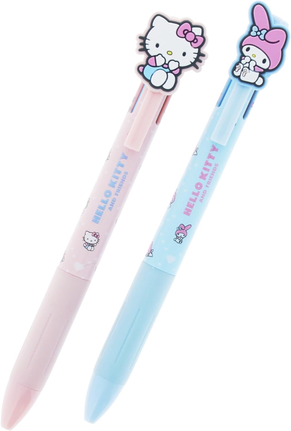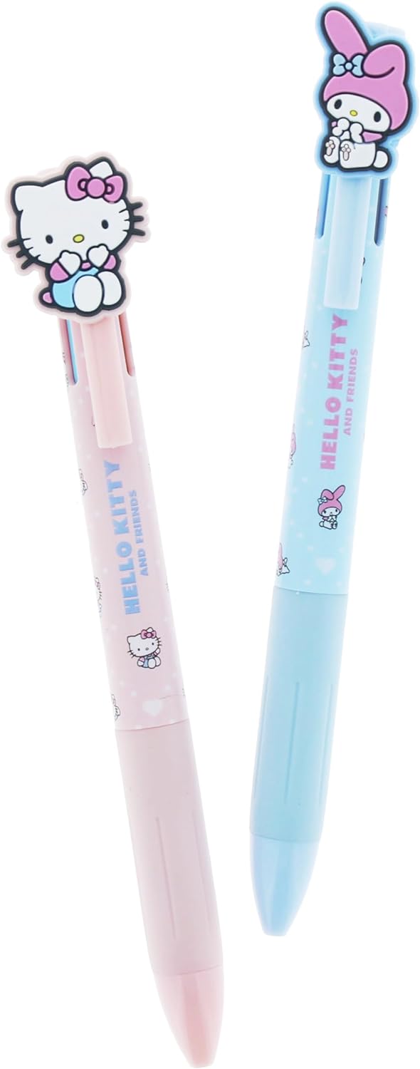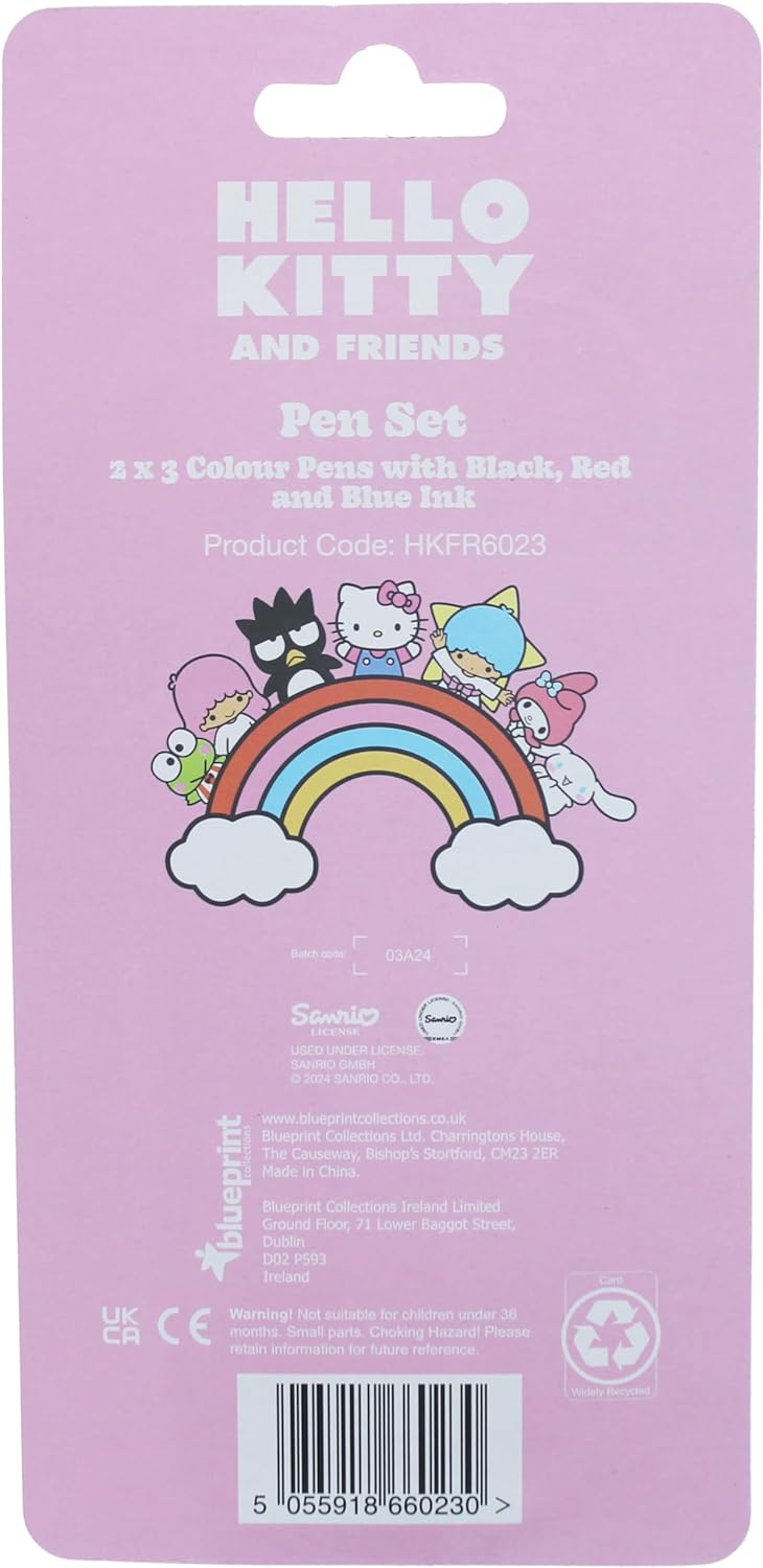 Set de 2 pixuri Hello Kitty & Friends cu scriere în 3 culori: negru, albastru și roșu. Fiecare pix măsoară 14 cm.