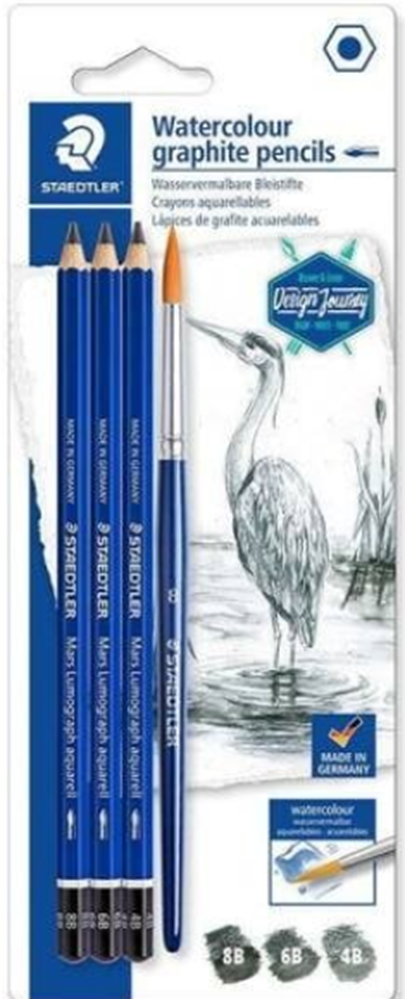 Set 3 creioane grafit acuarelabil + pensula Mars Lumograph 100A SBK4 Staedtler