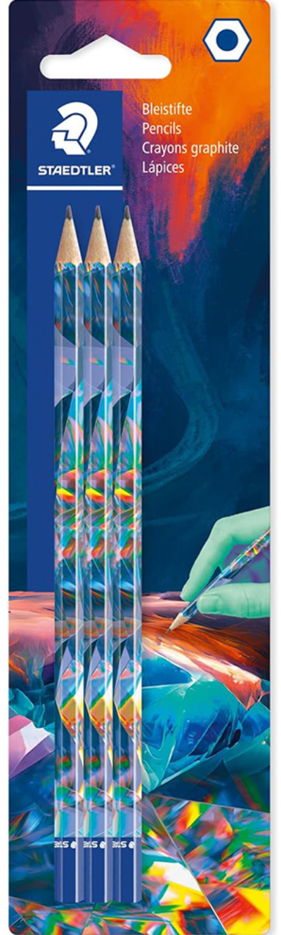Fiecare creion are o formă hexagonală clasică, care împiedică rostogolirea de pe birou, pe cât de practic pe atât de elegant. Toate cele trei creioane sunt prevăzute cu mină de duritate HB – ideală pentru un scris cursiv, luarea de notițe și schițe ușoare. Decorat cu un design îndrăzneț inspirat din Multiverse, acest set aduce o notă unică colecției tale de rechizite, adăugând personalitate și un strop de farmec cosmic instrumentelor tale de zi cu zi.