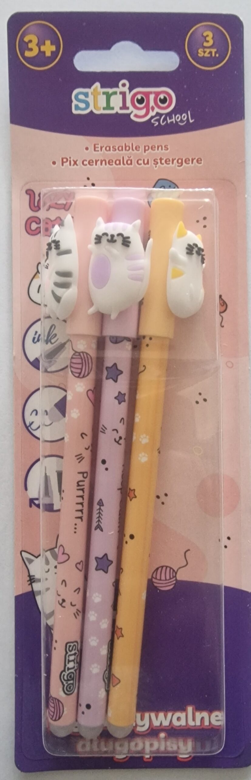 Set 3 pixuri cerneală cu ștergere Strigo - Pisicuțe